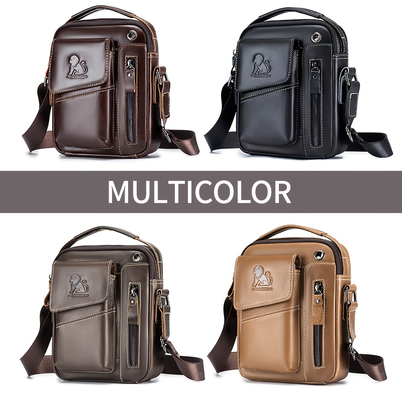 1pc Fashion Genuine Leather Men'S Crossbody Bag, Adjustable Shoulder Strap, Multi-Compartment Satchel with Top Handle, Zipper Closure, Non-Washable, for Outings - Dark Brown