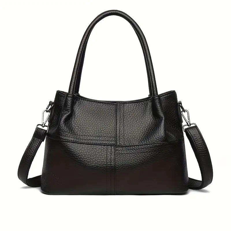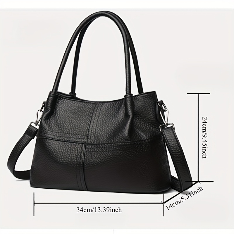 Black Lychee Pattern Women's Handbag, Dual-Use Tote and Crossbody Bag for Mom with Large Capacity & Multiple Compartments - Vintage Textured Shoulder Purse Suitable for Office Workplace Daily Shopping Casually Outing Moms with s Light Business Occasions