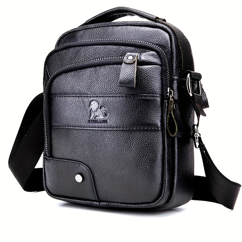 [Genuine Leather Crossbody Bag] Niu Genuine Leather Crossbody Bag with Adjustable Shoulder Strap, Double Compartment Design - Premium Top-Grain Leather, Multiple Zipper Pockets & Ergonomic Padded Back - Stylish Unisex Bag for Daily Commute, Valentine's Day, Father's Day Gifts (Deep Brown), Best for Christmas