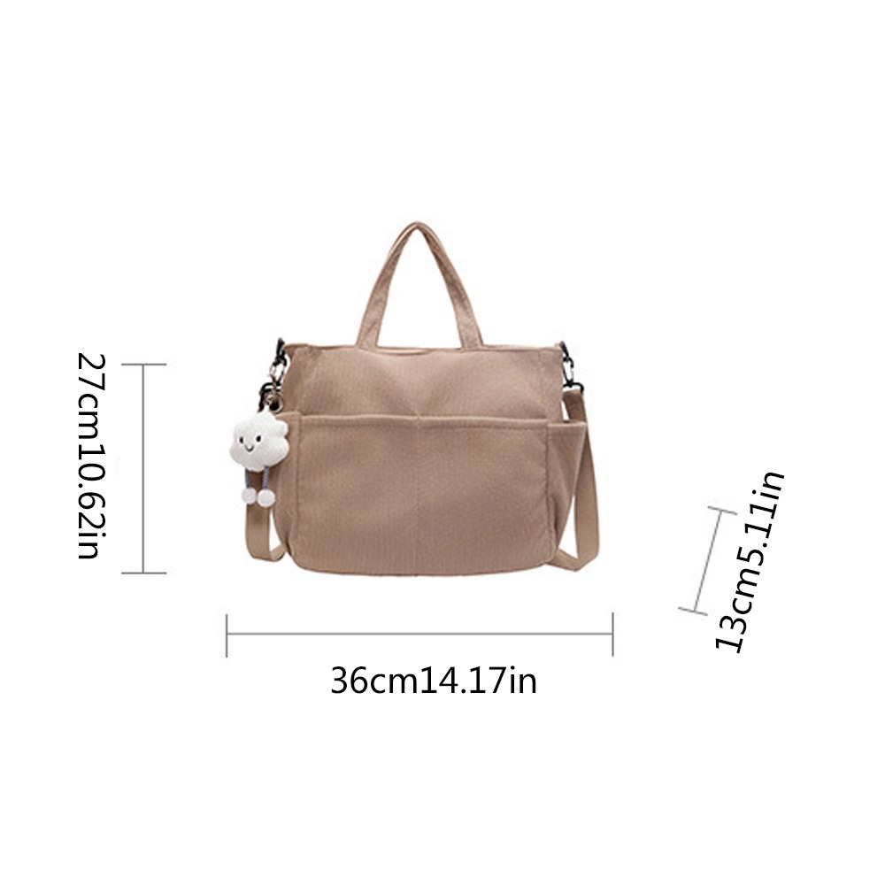 Machine Washable Large Capacity Corduroy Shoulder Bag - Adjustable Strap, Zip Closure - Ideal for Daily Commute and School