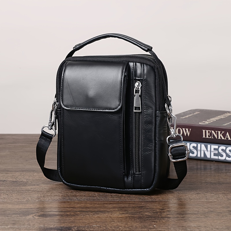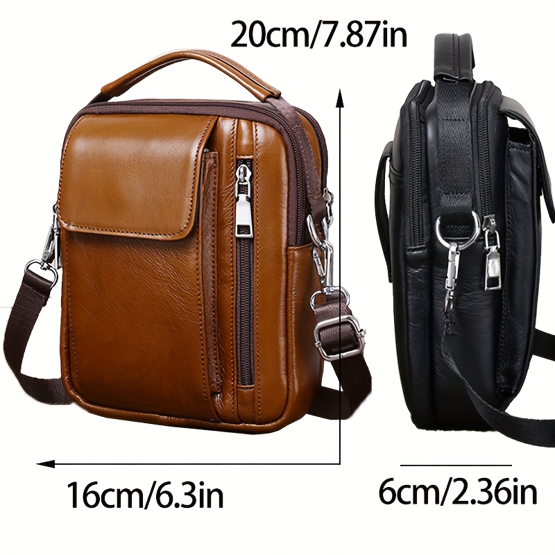 Men'S Genuine Leather Crossbody Bag - Adjustable Strap, Multiple Compartments, Zipper Closure, Black & Brown Options, Perfect for Everyday Use, Secure Travel Bag | Sleek Shoulder Bag | Durable Zipper Closure, Busy Professionals, Small Crossbody Bag, Mini Shoulder Bag for Men, Chains for Cross Bag, Wallet Crossbody Bag for Men, Business Travelers
