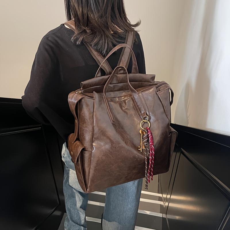 Vintage-Inspired Large Capacity Women'S Backpack - Adjustable Straps, Zipper Closure, Synthetic, Polyester Lining, Solid Color, Travel & Commute Bag, Commute Bag | Vintageinspired Bag | Synthetic Bag, Backpack for Travel