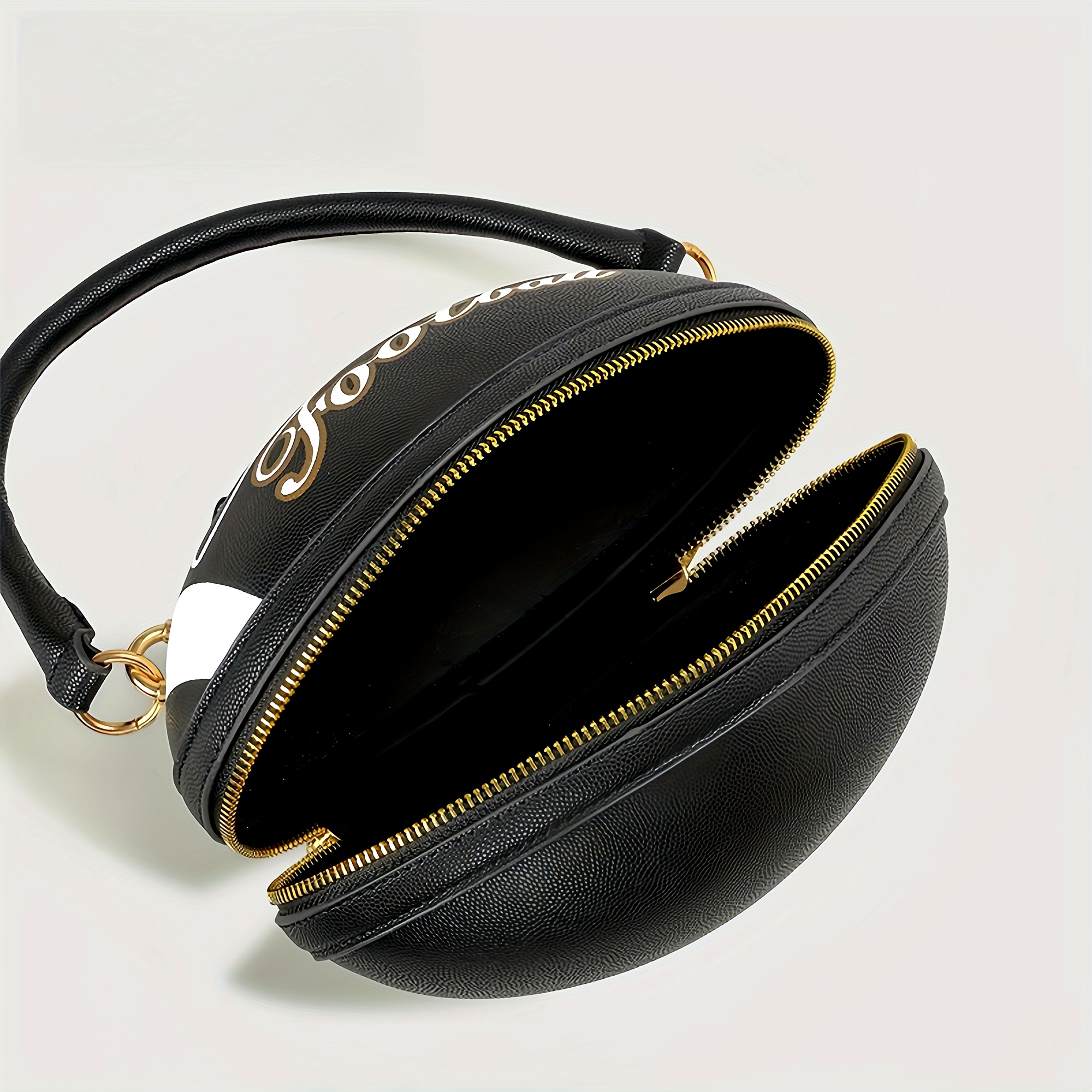 Fashion Football Shaped Handbag, Sports Theme Crossbody Bag with Adjustable Strap, Lightweight Zippered Tote with Polyester Lining, Positioning Print, Edge Paint Detail - Available in Black, White, Light Brown, Earthy Yellow