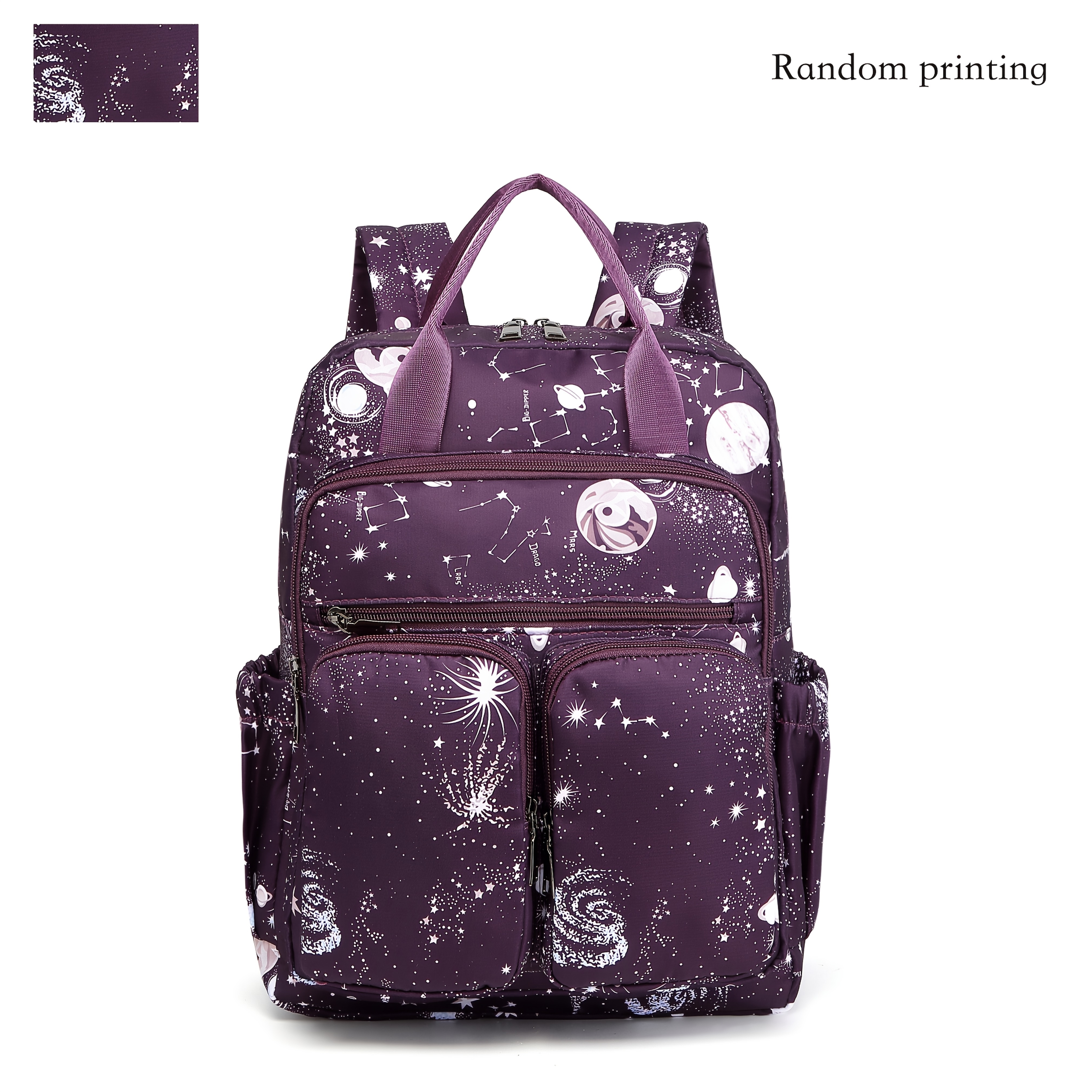 Women's Large Capacity Backpack - Stylish Purple Cosmic galaxy Backpack with Multiple Compartments, Heavy-Duty Nylon School Bag, Laptop Backpack for Women & Teens, Travel, College, Work - Space-Themed Organizer