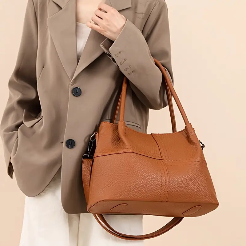 Black Lychee Pattern Women's Handbag, Dual-Use Tote and Crossbody Bag for Mom with Large Capacity & Multiple Compartments - Vintage Textured Shoulder Purse Suitable for Office Workplace Daily Shopping Casually Outing Moms with s Light Business Occasions