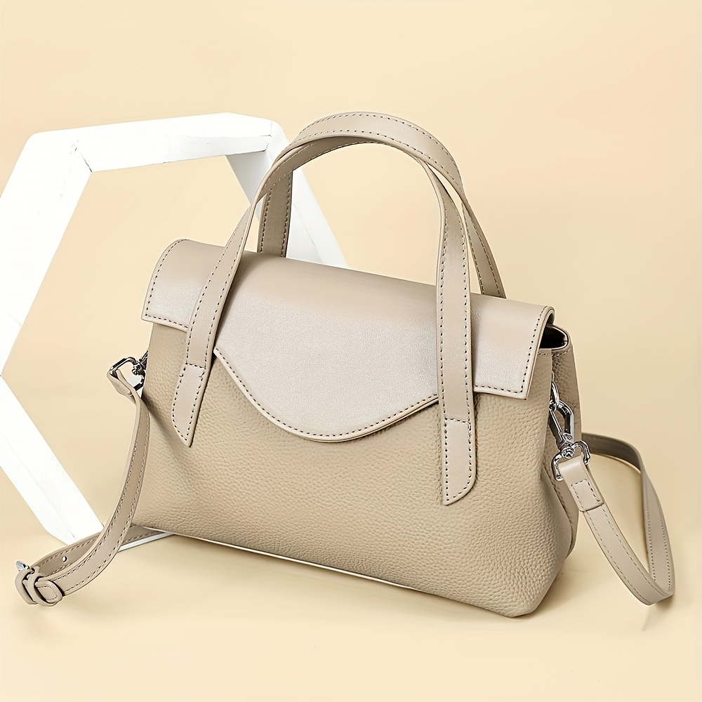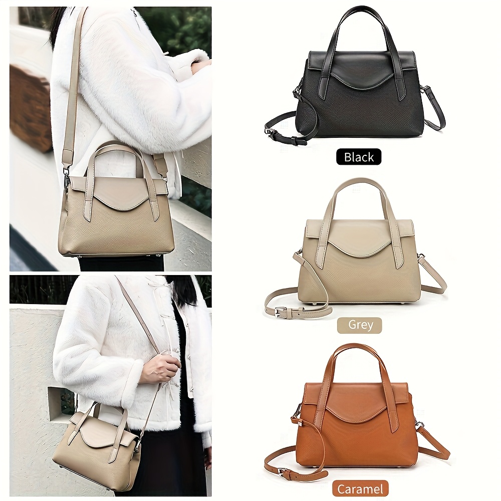 Genuine Leather Handbag, Top-Grain Cowhide Genuine Leather Crossbody Bag with Adjustable Strap, Solid Color Genuine Leather Shoulder Bag for Business, Commute, and Gatherings - A Gift for Loved Ones