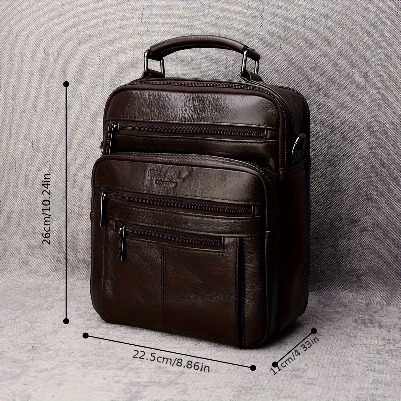 Men'S Genuine Leather Crossbody Bag - Casual Business Style, High-End Texture, Multi-Functional Large Capacity Shoulder Bag with Adjustable Strap, Black, Daily Commute Essentials | Sleek Black Bag | Secure Zipper Closure