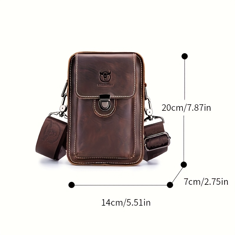 Men's Genuine Leather Crossbody Bag with Adjustable Strap - Brown One Shoulder Backpack, Front Flap Closure & Metal Eyelets - Compact Everyday, Motorcycle, Formal Bag - Sturdy First-Layer Cowhide Construction for Men, Secure Travel Pouch, Vintage Aesthetic