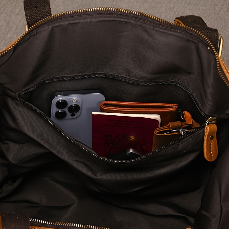 Men's Genuine Leather Travel Duffel Bag, 20 Inch Vintage Carry-On, Large Capacity, Commuter Style, No Wash, Adjustable Strap, Unprinted, Handheld & Shoulder Bag