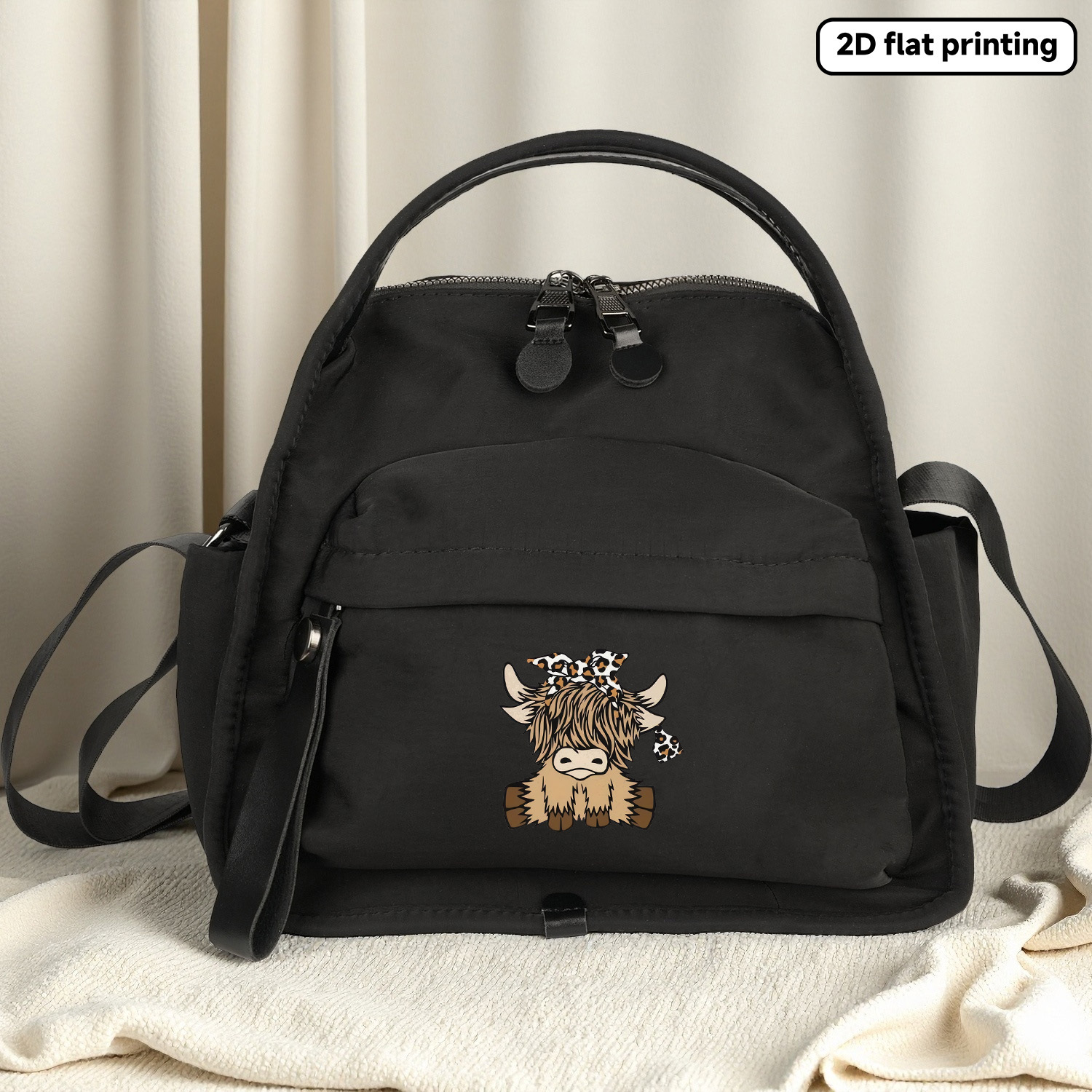 Women's Highland Cow Print Crossbody Bag with Detachable Strap - Durable Polyester Handbag with Zipper Closure, Cute Scottish Cow & Hearts Design, Beige & Brown Casual Everyday Bag for Women, 2D Flat Printing (No Fade), 2D Flat