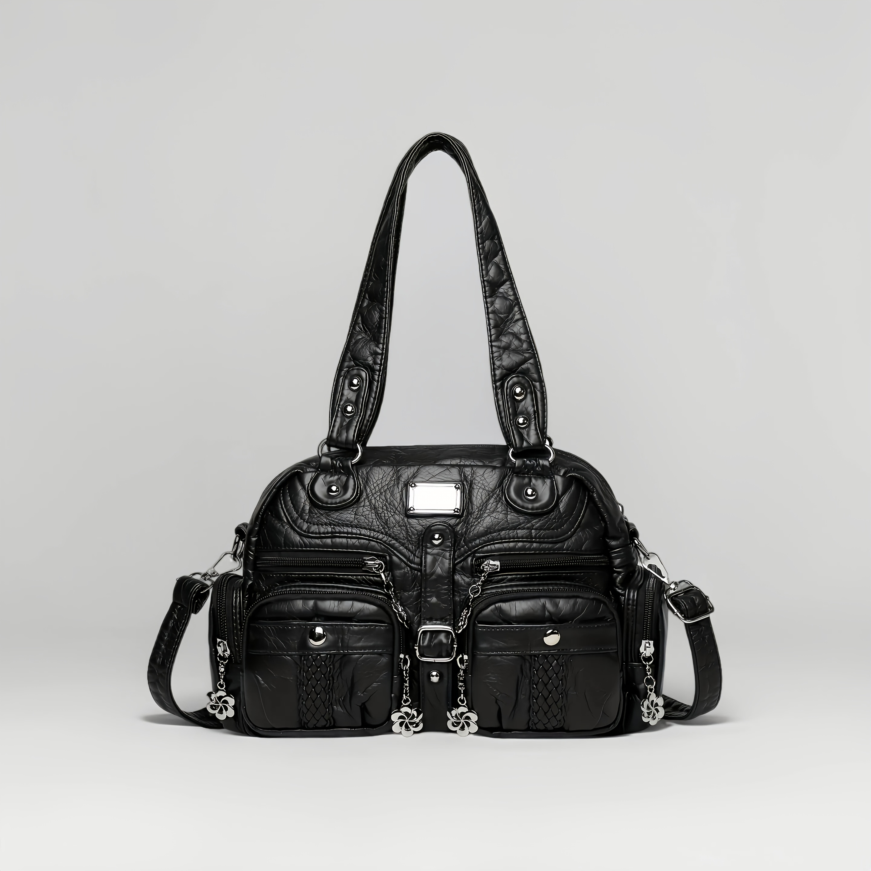Women'S Vintage Y2K Punk Handbag with Multiple Pockets - Gothic Punk Style Tote Bag, Golden-Tone Hardware & Chain Strap, Zipper Closure, Polyester, For Everyday & Special Events - Retro Women'S Purse, Party Accessory, Edgy Fashion